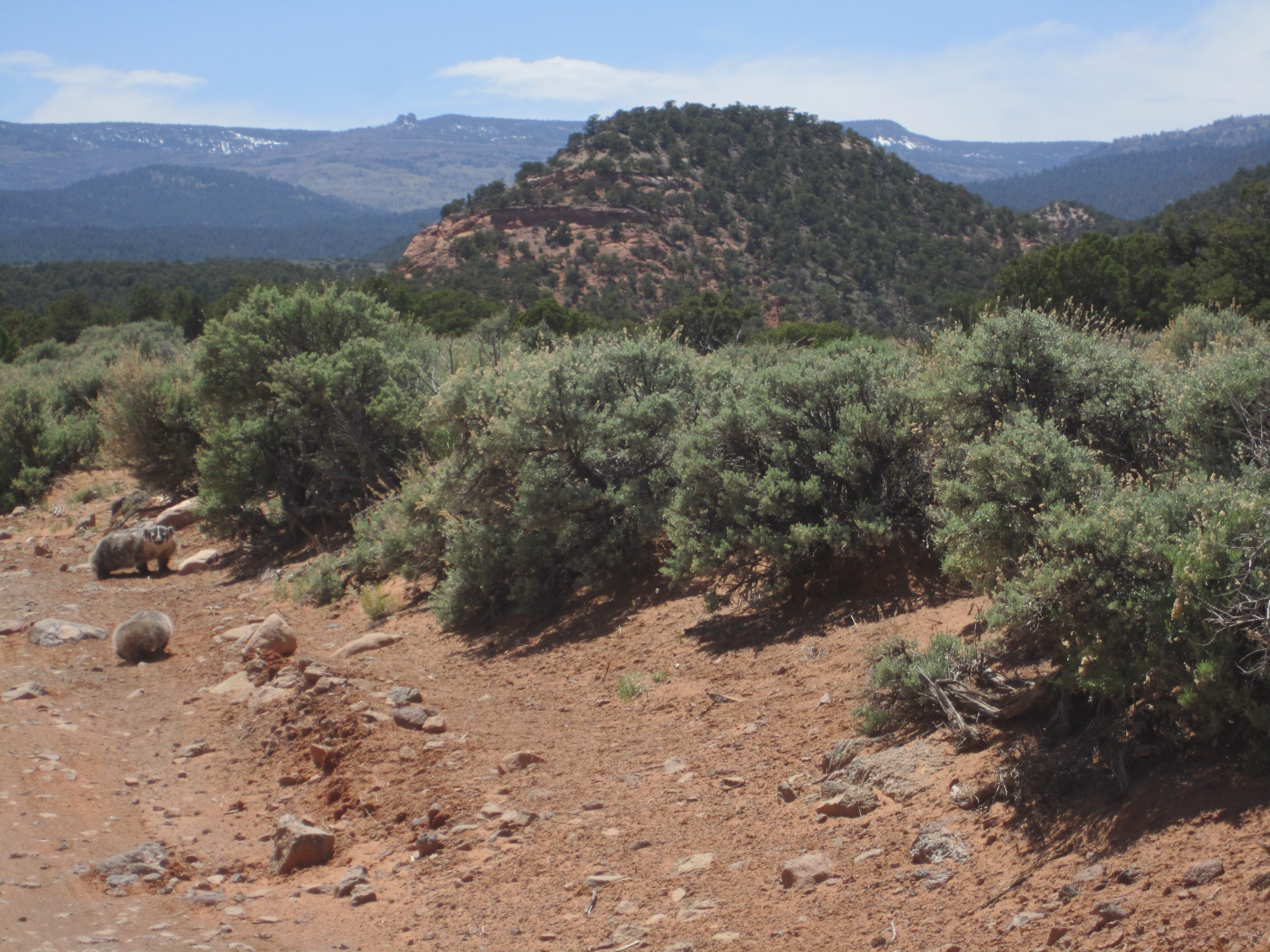 Badger and Cub on the Road (the cub looks like a rock)